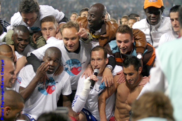 En seconde mi-temps, le Racing a retrouvé les vertus qu’il a montrées tout au long de la saison. C’est-à-dire une solidité défensive, une grosse solidarité dans toutes les lignes et la volonté ferme de ne rien lâcher jusqu’à la fin. « Ce soir encore, et à l’image de la saison, les garçons ont fait preuve d’un gros cœur, commentera Jean-Pierre Papin dans des vestiaires où flottait une forte odeur de champagne. Jusqu’au bout ç’a été difficile. Mais c’est tellement bon. C’est une délivrance. Je suis très fier de mes joueurs. » Si la fin de match a été stressante pour tout le monde, le coup de sifflet final a été, c’est vrai, une véritable délivrance. Les joueurs, le staff et les dirigeants pouvaient alors communier avec ce public qui s’est révélé, tout au long de ce championnat, comme le douzième homme. Le feu d’artifice, la joie des joueurs devant le public qui avait envahi la pelouse, la fête de JPP et de ses hommes dans le vestiaire : il y avait du bonheur à revendre à la Meinau, ce vendredi soir. Le peuple Strasbourgeois a retrouvé la Ligue 1 et sa fierté ! |