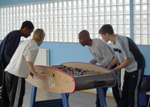 Retour en cours. Anglais ou informatique, les élèves de Jean-Marc Kuentz sont connectés au monde entier. Cest le milieu de laprès-midi, les cours sont terminés pour aujourdhui, il reste les devoirs du soir, mais maintenant tout le monde se retrouve sur les terrains verts pour apprendre le métier du bonheur. Football au programme, cest une évidence, mais un football en formation, un long cheminement avant de devenir des « pros », des heures et des heures dentraînements, dapprentissage.